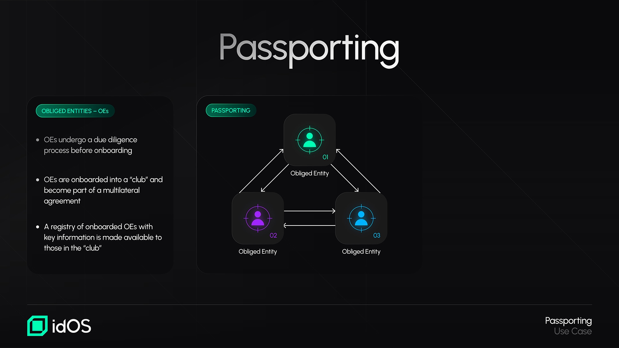 Passporting is not a concept created by idOS, it is grounded in international standards and national regulations: the Financial Action Task Force ("FATF") for example, in its Recommendation 17, allows obliged entities ("OEs") - financial institutions that are subject to AML regimes and are required to conduct Customer Due Diligence to establish a business relationship with their customers - to rely on third parties to introduce a business or to perform the identification and verification of a customer identity. This process is also referred to as "reliance on third parties" or "delegation of due diligence measures to third parties" in international and national regulatory frameworks. idOS simply streamlines such processes for KYC-related data re-sharing between entities.